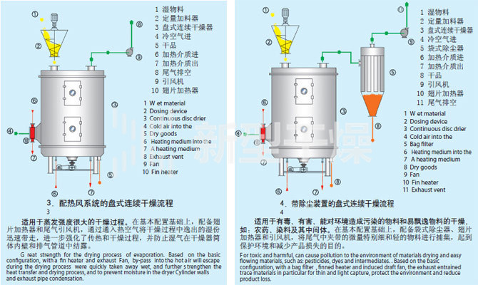 ◎真空型:在真空状态下操作的盘式干燥器,特别适用于热敏性物料的干燥。