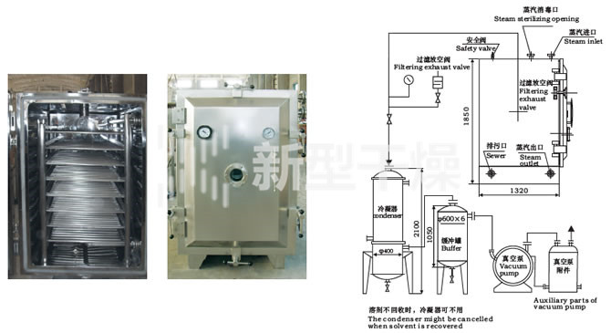 适用于在高温下易分解,聚合和变质的热敏性物料的低温干燥;被广泛地采用在制药、化工、食品、电子等行业。