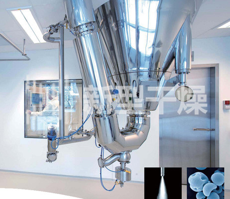 本机组是一种可以同时完成干燥和造粒的装置。按工艺要求可以调节料液泵的压力、流量、喷孔的大小,