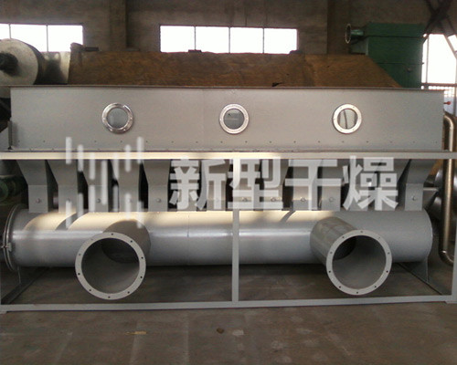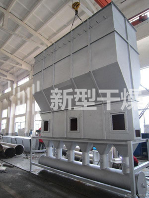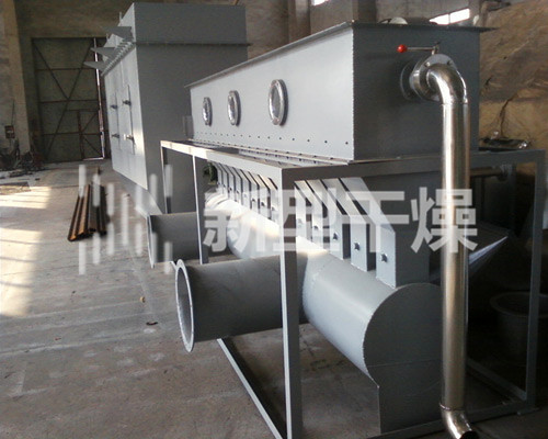 洁净的热风经阀板分配进入床体内,从加料器进入的湿物料被热风形成沸腾状态。由于热风与物料广泛接触,增强了传热传质的过程,因此在较短时间内就可干燥。如用连续型,物料从床体的一头进入,经过几十秒至几分钟沸腾干燥,自动从床体另一头流出。本设备一般进行负压操作。