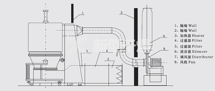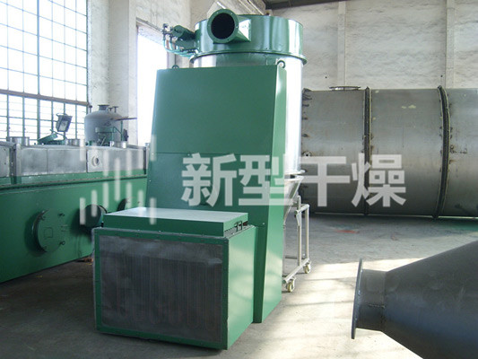 空气经加热净化后,由引风机从下部导入,穿过料斗的孔网板。在工作室内,经搅拌和负压作用形成流态化,水份快速蒸发后随着排气带走,物料快速干燥。