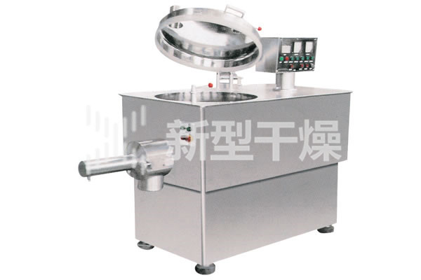 粉体物料与粘合剂在圆筒形容器中由底部混合浆充分混合成湿润软材,然后由侧置的高速粉碎桨切割成均匀的湿颗粒。