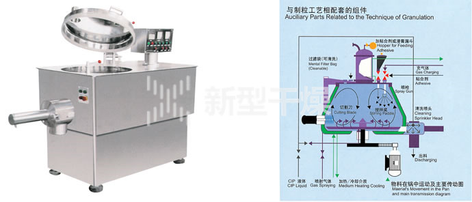 ◎在同一封闭容器内完成,干混-湿混-制粒,工艺缩短。