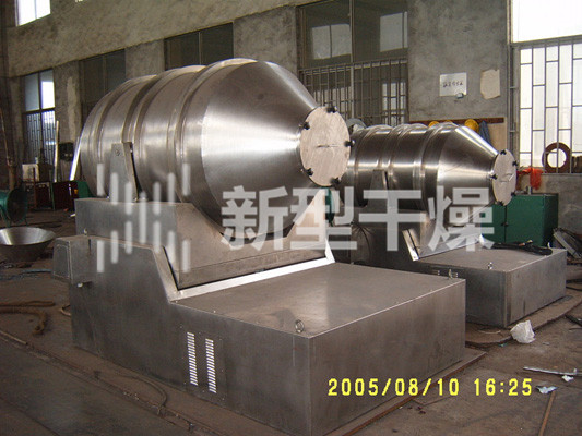 EYH二维混料机的转筒可同时进行二个运动,一个为转筒的转动,另一个为转筒随摆动架的摆动。被混合物料在转筒内随转筒转动、翻转、混合的同时,又随转筒的摆动而发生左右来回的掺混运动,在这两个运动的共同作用下,物料在短时间内得到充分的混合。EYH二维混料机适合所有粉、粒状物料的混合。