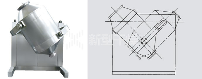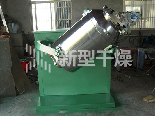 装料的筒体在主动轴的带动下,作周而复始的平移、转动和翻滚等复合运动,促使物料沿着筒体作三向复台运动,从而实现多种物料的互相流动、扩散、积聚、掺杂.以达到均匀混合的目的。