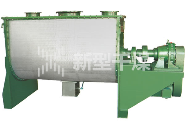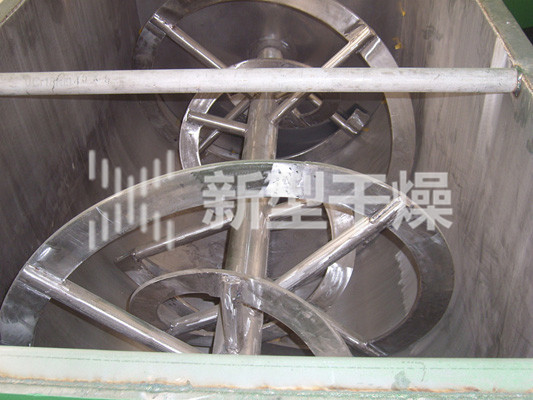 该机型由容器、螺旋搅拌叶片和传动部件组成:螺旋叶片一般做成双层或三层,外层螺旋将物料从两侧向中央汇集,内层螺旋将物料从中央两侧输送,形成对流混合。