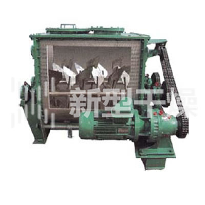 本系列混合机以强烈、高效混合为特点、卧式筒体内两根搅拌等速反向旋转,上特殊布置的桨叶确保物料径向、环向、轴向三向运动,形成复合循环,在极短的时间内达到均匀混合。