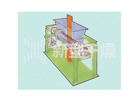 ◎槽形成型机: 由加料斗和刻有槽的二根辊子构成。以增大物料表面积的造粒为目的。物料被内侧运转的辊子吸入,被反转的外侧刮刀切成粒状。